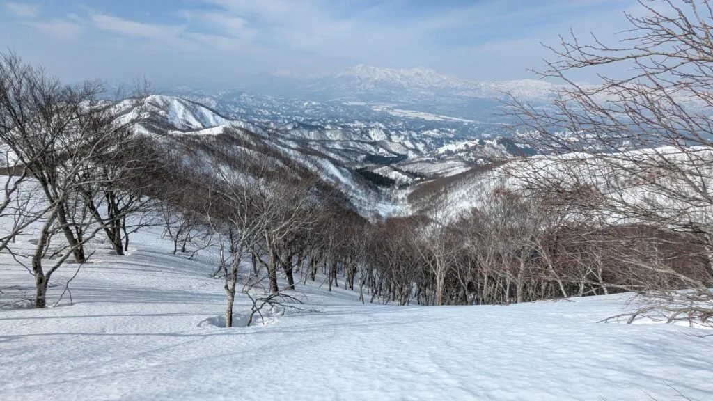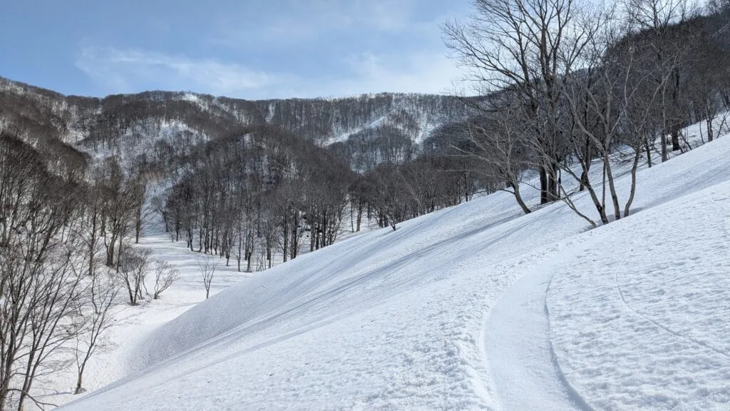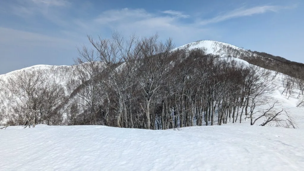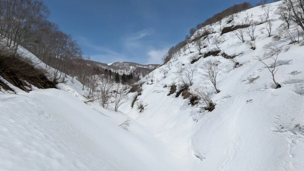 250327 山頂から360度滑れるのが鍋倉山 2025年3月28日 最終更新日時 : 2025年3月28日 HottaManabu FacebookXLINECopy 残雪の多い今年は、山頂から360度快適に滑りこめる。 厳冬期にはまずいかない山頂から「よし八池」方面の沢を落としてみる。 妙高山塊を正面に見て 標高差400mがあっという間。 暑さで下部はストップなので「よし八池」まで行かず登り返す。 稜線に上り返してきた。シールで登れる。 昨年、一昨年と小雪で行かなかった三郷へ下る。 想定通り、ザクザクストップでくたびれる。最奥が鍋倉山山頂 最近の暑さで沢の中はデブリ、水流があるので、ルート選びは注意が必要だ。